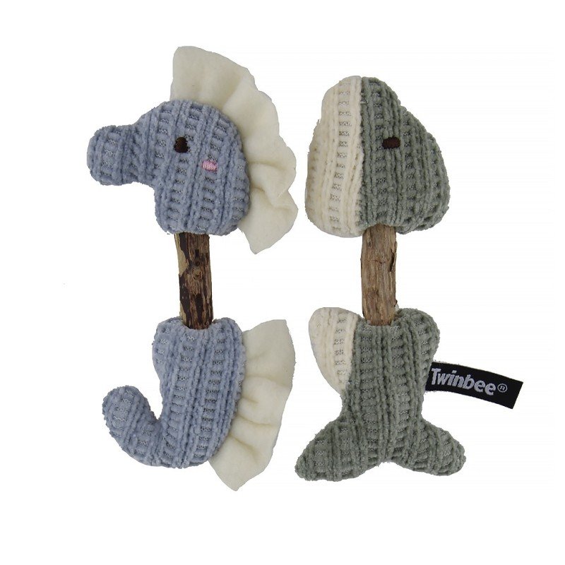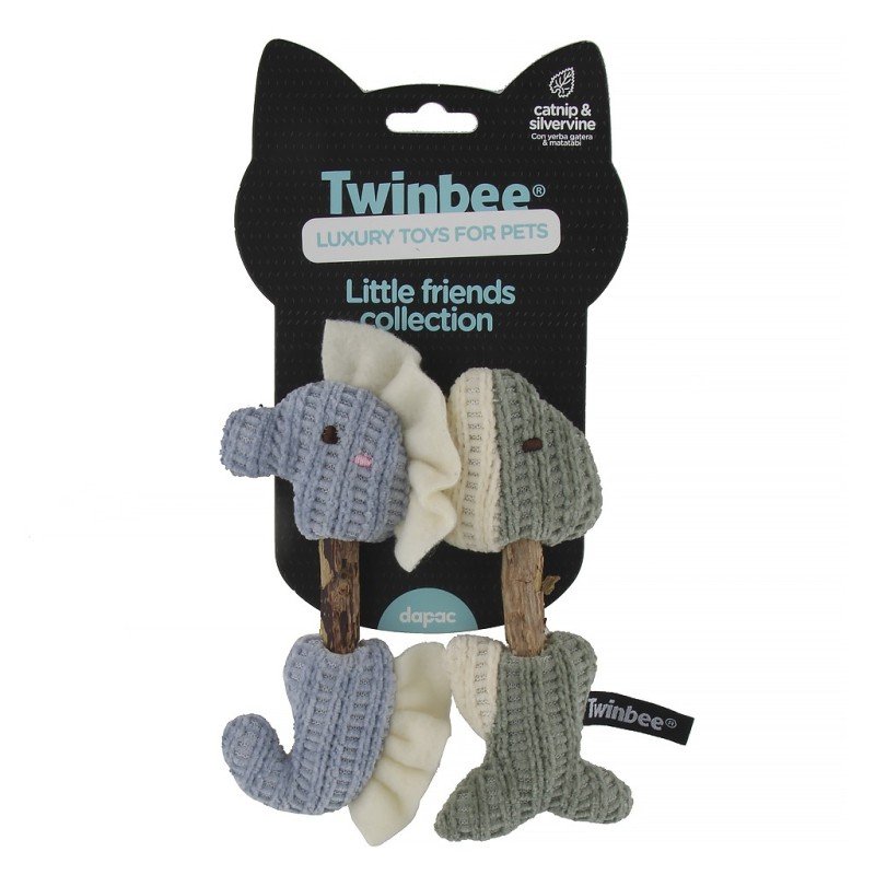 El Set marino Twinbee es un pack de dos juguetes suaves y ligeros —un delfín y un caballito de mar— diseñados para estimular de forma natural el comportamiento cazador del gato. Ambos están aromatizados con catnip y silvervine/matatabi, una combinación vegetal muy atrayente incluso para gatos que no reaccionan al catnip tradicional. Gracias a su fragancia natural, despiertan la curiosidad, motivan el juego activo y fomentan el ejercicio indoor.