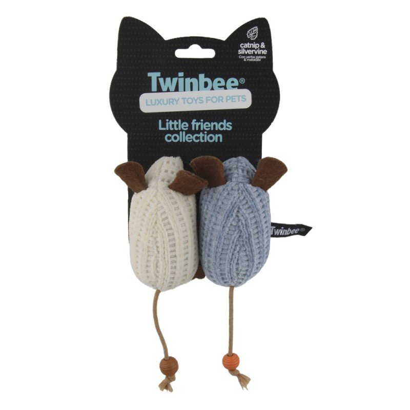 El Set de dos ratones Twinbee es el juguete perfecto para activar el instinto de caza de tu gato gracias a la combinación de catnip y silvervine (matatabi), dos aromas naturales altamente estimulantes incluso para gatos que no reaccionan al catnip tradicional. Su diseño ligero, suave y seguro convierte estos ratoncitos en un imprescindible para cualquier felino curioso y activo.