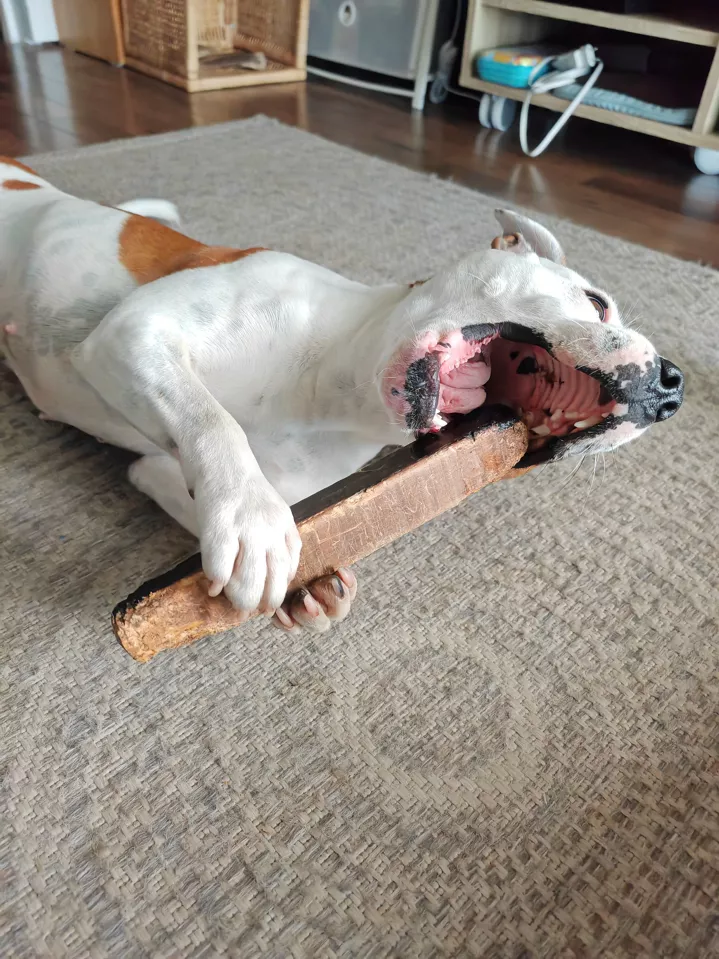 Recomendado especialmente para perros fuertes, resistentes y amantes de la madera, que necesitan un juguete sólido, estable y libre de productos químicos.