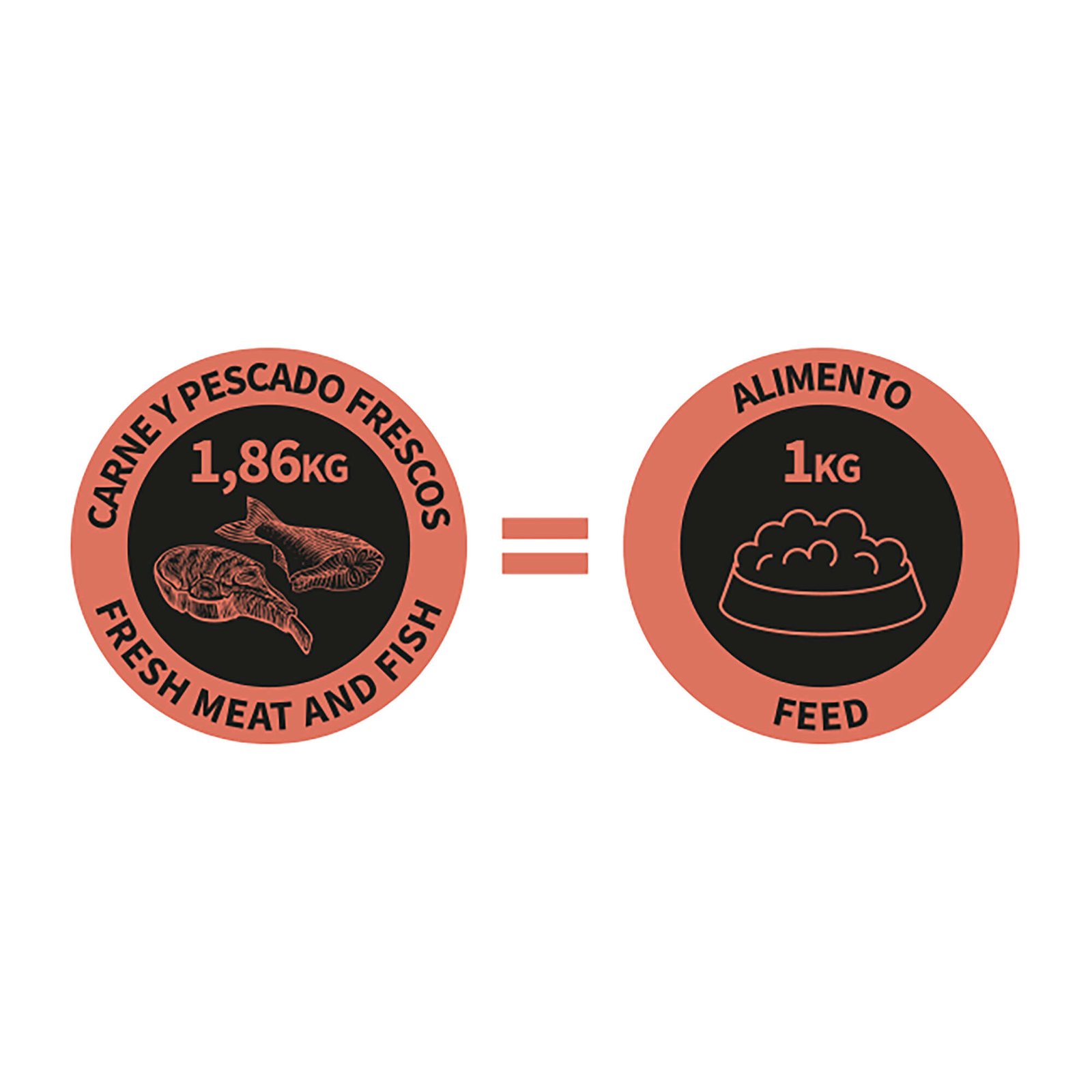 Ingredientes: 45% salmón fresco, 30% pavo fresco, almidón hidrolizado, tocoferoles de aceites vegetales, extracto de romero, huevo deshidratado, aceite esencial de orégano, tomillo, clavo, romero, canela Ceylán.