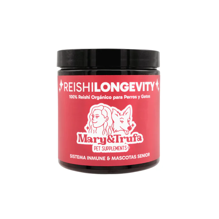 Reishi Longevity de Mary&Trufa es un suplemento natural para perros elaborado con hongo reishi orgánico, conocido como el “hongo de la inmortalidad” por sus potentes propiedades adaptógenas y antioxidantes.