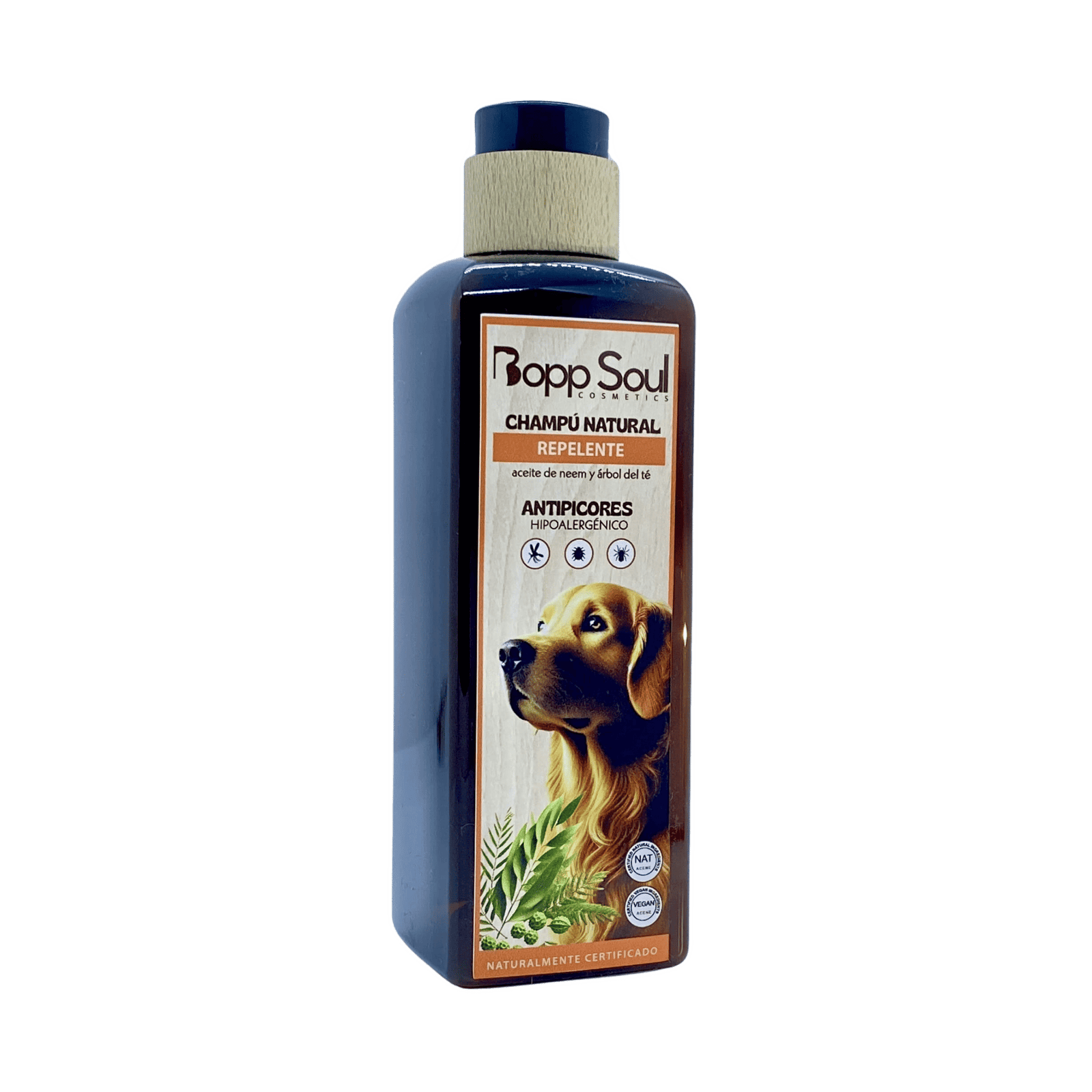 A diferencia de los champús con ingredientes sintéticos que pueden ser más agresivos para la piel, el champú repelente y ecológico de Bopp Soul utiliza limpiadores suaves sin alterar el pH de su piel. Sus principios cosméticos principales son la “Brassica Juncea Seed Extract” (aceite de grano de mostaza marrón) y el “Brassica Alba Seed Extract” (aceite de grano de mostaza blanca). Ambos son ingredientes higroscópicos, con propiedades hidratantes sin dejar sensación grasienta en el manto del animal y altamente eficaces contra pulgas y garrapatas. Además ambos aceites de mostaza contienen propiedades antifungicidas, desinfectantes, antimicrobiales y antiinflamatorias, características fundamentales en la formulación de nuestro champú repelente, siendo diferente al resto ya que el principio activo más común que se suele utilizar es el aceite esencial de romero o de un árbol cítrico, aunque éstos dos últimos aceites son menos eficaces como antiparasitarios. A nivel dermatológico, el aceite de mostaza blanca tiene la capacidad de ser aún más antimicrobiano que la mostaza marrón. Gracias a esta función, la piel se encuentra más limpia y puede regenerarse mejor. Además, en los últimos estudios, el aceite de mostaza blanca ha demostrado mantener las células de la piel sanas reduciendo el riesgo de posibles enfermedades dermatológicas. Otro potencial ingrediente que encontramos en el champú, es el Cymbopogon Winterianus Herb Oil (aceite de citronela) extraído de la planta aromática Syzygium aromaticum Syn. Eugenia caryophyllus. Su composición química es principalmente citronelol. Actúa como fungicida, antiséptico, insecticida y su efecto antibacteriano queda potenciado al estar en conjunto con los aceites de mostaza. El aceite de citronela es altamente eficaz contra los mosquitos y otros insectos. Finalmente y como toque aromático hemos añadido el Citrus Limon Peel Oil o aceite de limón y la Mentha Piperita Oil o aceite de menta piperita, aceites naturales de fácil tolerancia para nuestras mascotas y que contienen propiedades repelentes de instectos, antiinflamatorias y reguladoras del sebo y el agua en el manto de la piel del perro