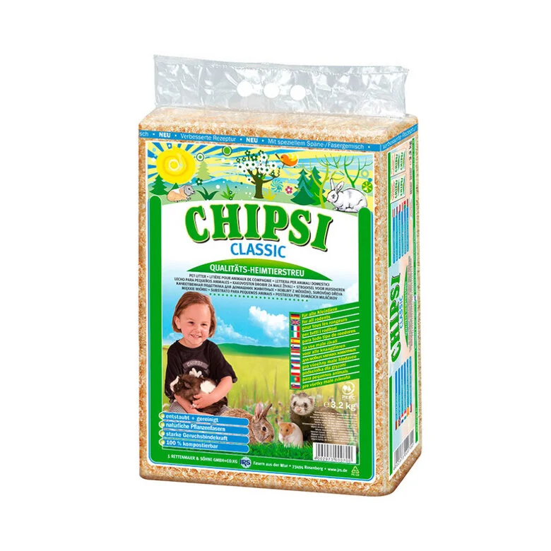 Este producto de Chipsi Classic es un lecho de virutas de maderas blandas muy absorbentes y que no contiene polvo. El lecho es adecuado para que tu compi arme una cama muy mullida para que se siente cómodo. Además elimina olores lo que proporciona un ambiente más limpio. Este lecho de virutas de madera naturales es adecuado para roedores, conejos, chinchillas, hurones, etc. También podrán hacer cuevas donde se esconderán y jugarán dentro de ellas, todo para mantenerse entretenidos y felices.